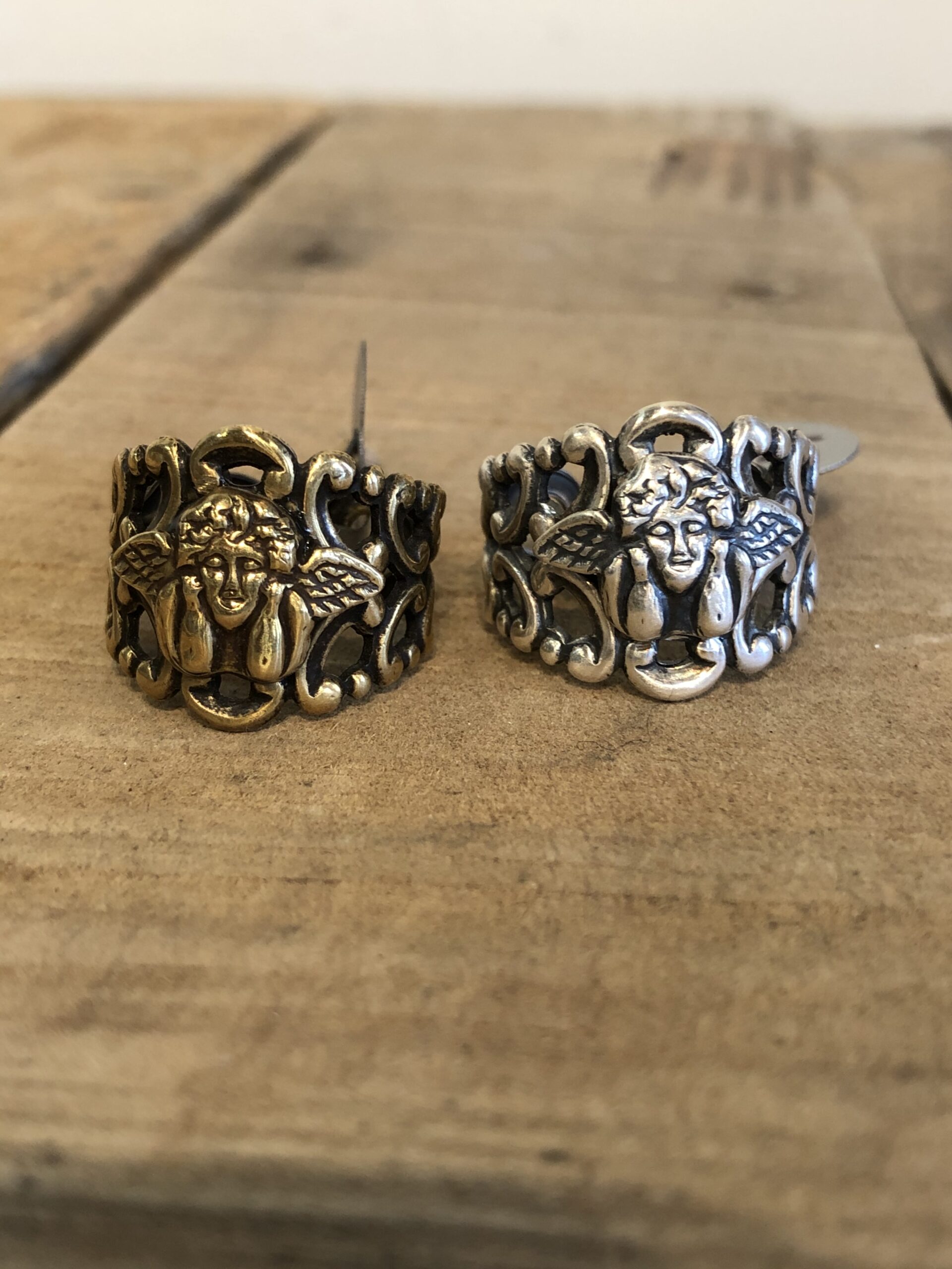 Our Guardian Angel Ring will remind the wearer that they are not alone on their journey through life. Adjustable band. Available in Antique Brass, Antique Silver or Mixed metal,